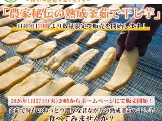 2026年1月27日(火)20時より「熟成釜茹で干し芋の販売を開始」いたします!
